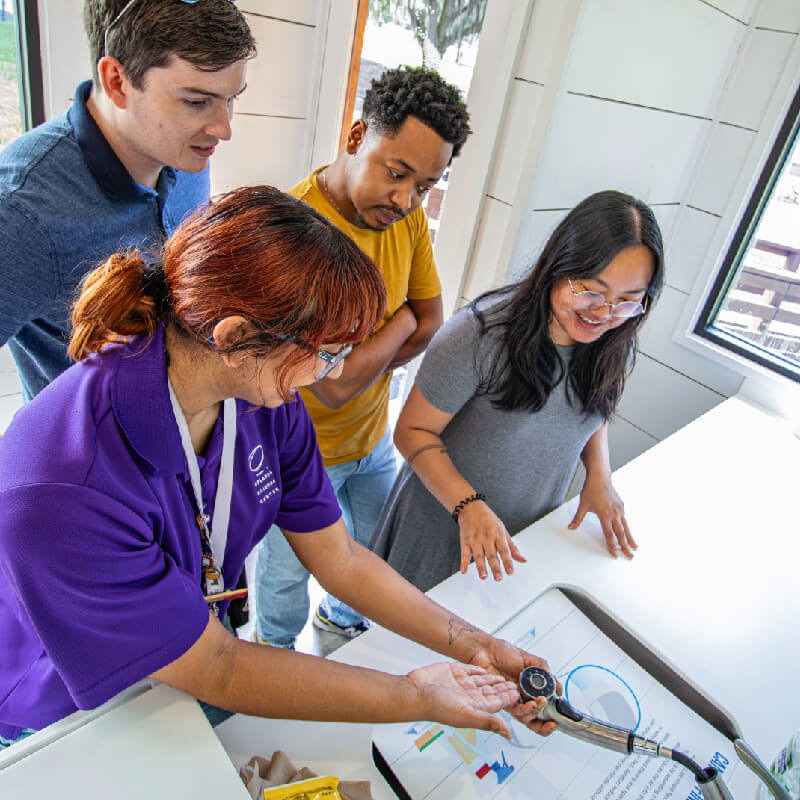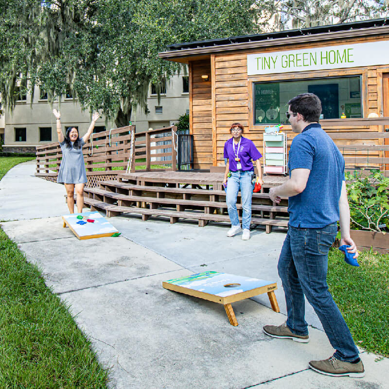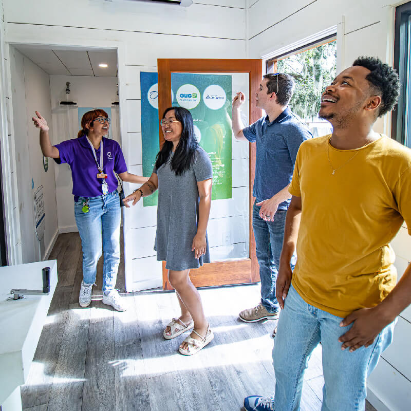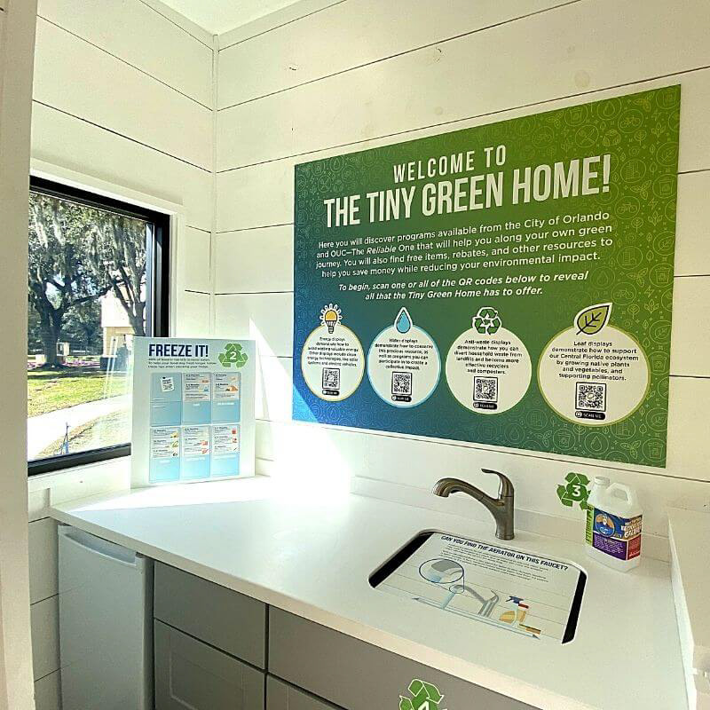 Built by OUC, the City of Orlando, and Orlando Science Center this first-of-its-kind tiny home offers a hands-on experience through interactive displays with digital components to educate visitors on energy and water conservation, sustainability rebates, vehicle electrification, renewables, composting and food gardens. It includes a functioning roof-top solar array and a rain barrel to collect and conserve water, among other green features visitors can add to their own homes.